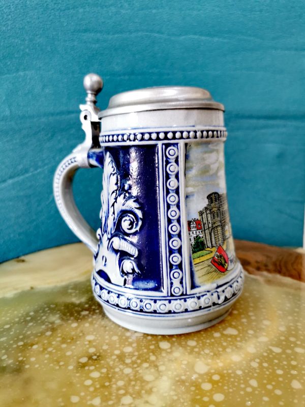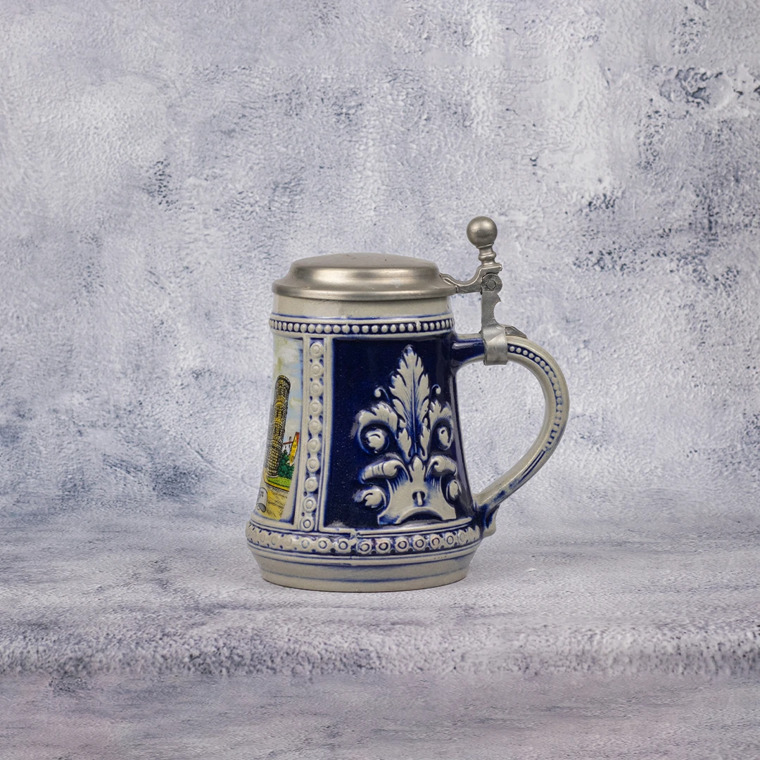 The cobalt blue hue adds a touch of sophistication, making this vintage beer stein a statement piece for any collector or beer enthusiast. The Salzglasur stoneware, known for its unique salt glaze finish, adds character and texture that stands the test of time.
