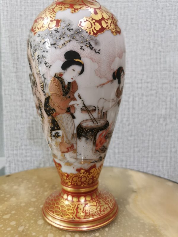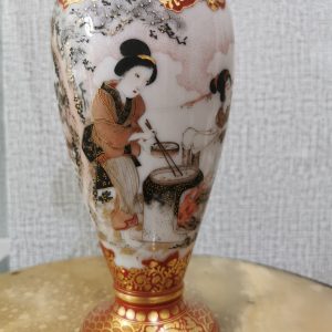 Behold the intricate details that grace this vase, painted with precision and care. Two detailed women come to life in a dance of colors, capturing the essence of a moment frozen in time. Each stroke tells a story, inviting you to immerse yourself in the grace and beauty of Japanese artistry.