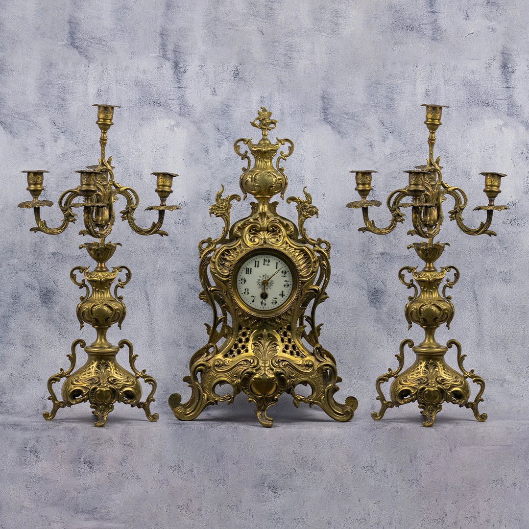 Timeless Opulence Antique French Style Brass Mantel Clock Set